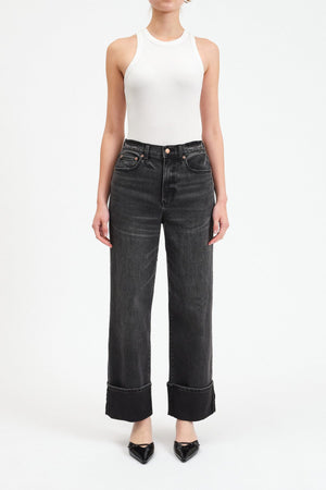 Take on the town in this versatile high rise loose jean. Featuring rolled cuffs and a dark wash with vintage-inspired whiskering, this closet staple is constructed from our Just Right denim for the perfect mix of rigid and stretch.
