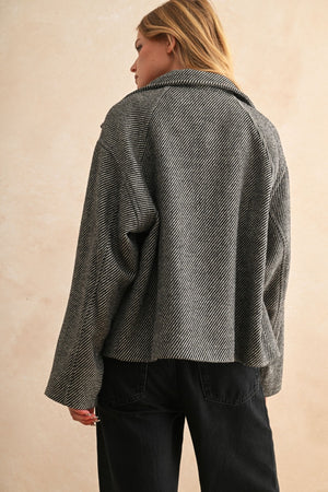 Experience timeless elegance with the NYLAND Dulcie Herringbone Cape Style Jacket—a refined layer designed for modern wardrobes.