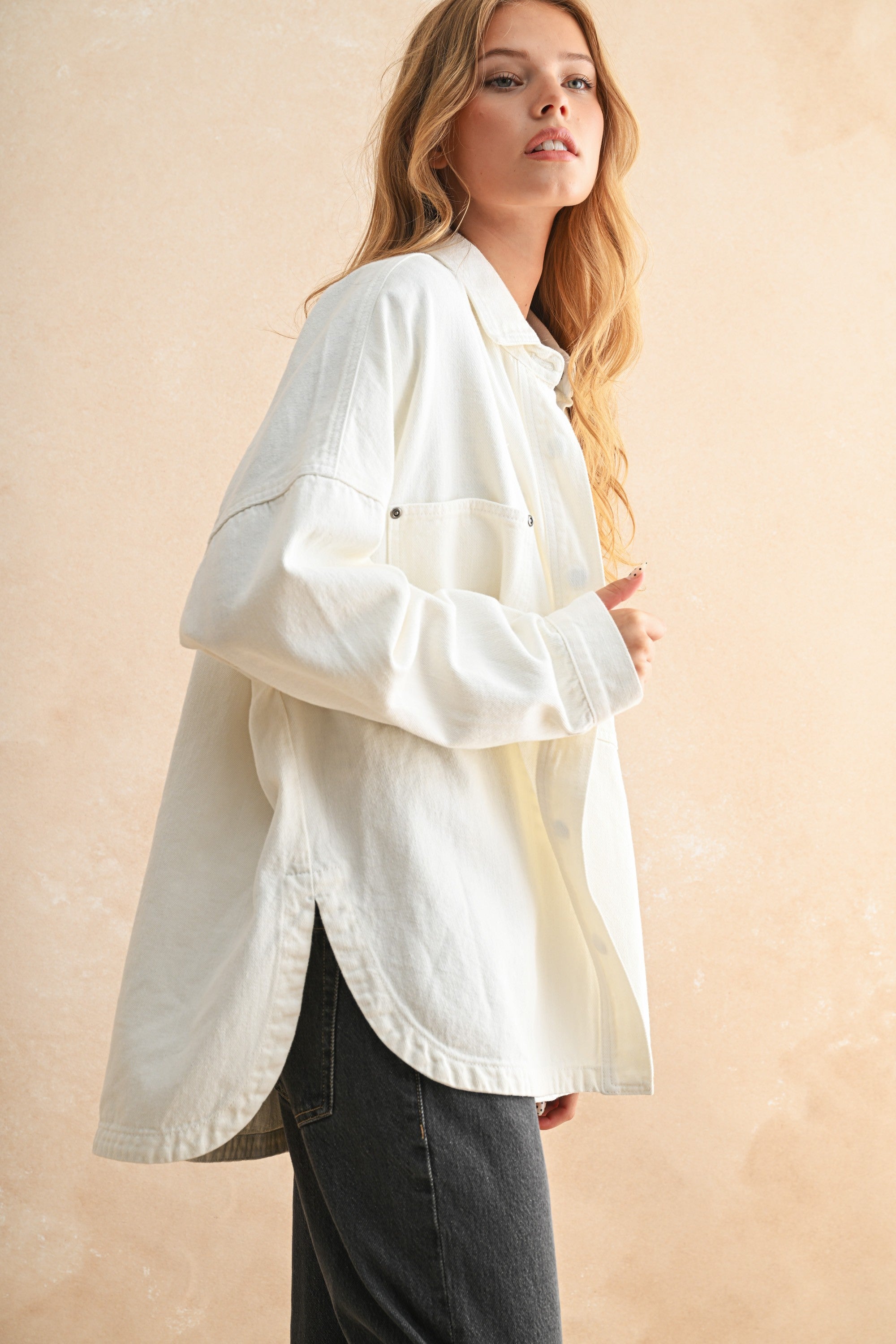 Built for everyday wear, the Mila Denim Shacket combines the rugged charm of denim with the practicality of a shirt jacket, creating a wardrobe staple you’ll reach for again and again.