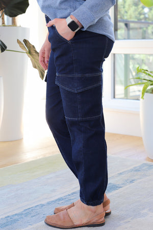 Make any day a stylish mission in these utility pants, complete with military-inspired pockets and elasticized cuffs.