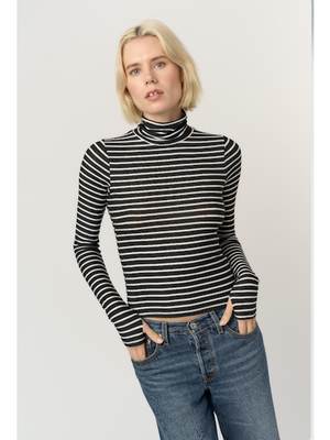 The Lipson Turtleneck is made from a soft jersey with a smooth, close fit. It features a foldover neckline, long sleeves, and thumbhole cuffs for added comfort. Finished in a classic stripe pattern, it’s an easy staple for everyday styling.