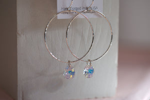 These Large Crystal Circle Earrings are sure to get you noticed! Available in Sterling Silver,  and topped off with stunning Swarovski Crystals these earrings add a touch of class that looks great at any time of day.