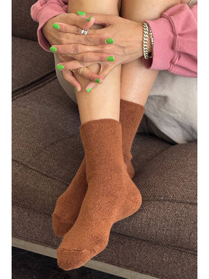 These are hands down the comfiest and cutest socks to wear all year long. Made from a fluffy, terry cotton blend yarn that is breathable and unique. Wear her around the house and feel like you are walking on a Cloud. Pair her with your favorite clogs or slides and enjoy the extra cushion. She also makes the sweetest gift as a party favor or a stocking stuffer to gift all your BFFs!