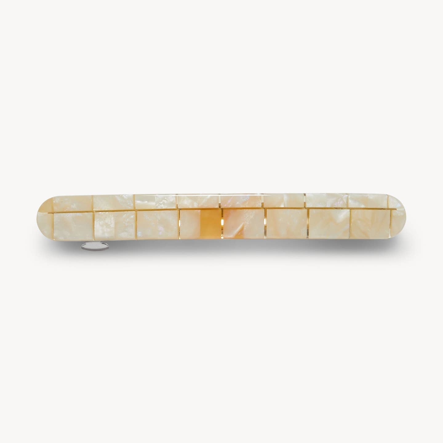 A classic French barrette, handmade in Paris from fine Italian acetate. The flexible spring clasp securely holds small-to-medium amounts of hair. Suitable for all hair types and textures.