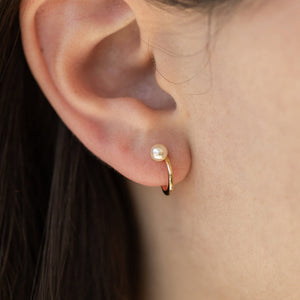 Get double the style with our Audrey Hoop Earrings! These pearl illusion huggie hoops in gold create the look of a double piercing, adding a chic touch to any outfit. Light and comfy, these earrings are perfect for all-day wear.