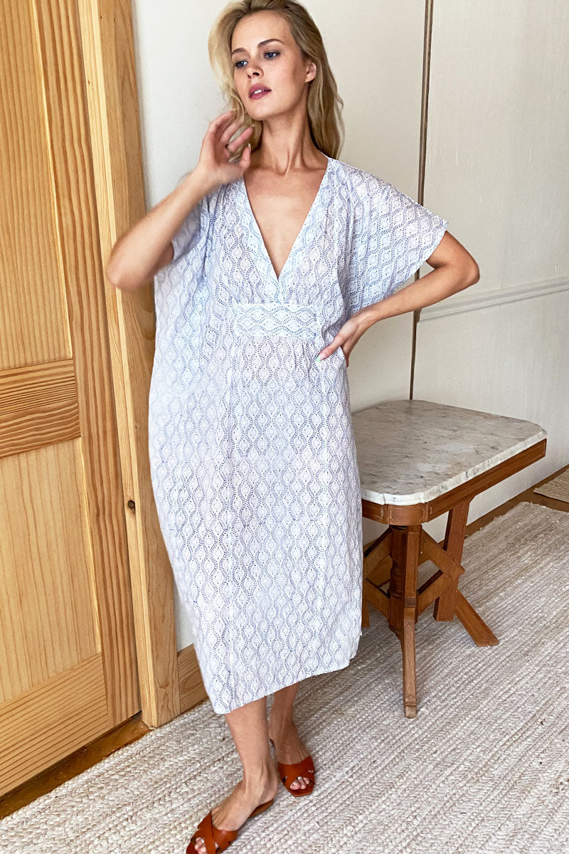 EMERSON FRY Puff Isla Top in Maeve Outline Indigo