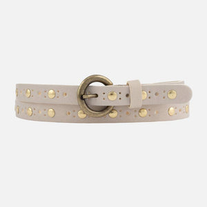 Elevate your style effortlessly with our skinny leather belt Chloe. Adorned with vintage bohemian studs and an antique gold round buckle, it pairs seamlessly with dresses or jeans, adding a captivating touch of sparkle and a distinctive bohemian edge to your outfit.