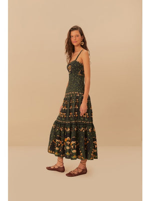 Farm Rio Flowers Arch Black Sleeveless Maxi Dress