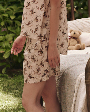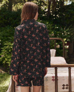 Inspired by classic men’s pajamas, The Square Pajama Short is an abbreviated take on sleep bottoms. Designed to be slouchy and comfortable with an elasticized waist and dropped rise, these shorts are cut from soft, light and airy cotton and trimmed with contrast piping. They pair back to The Pajama Shirt for a breezy, warm-weather look.