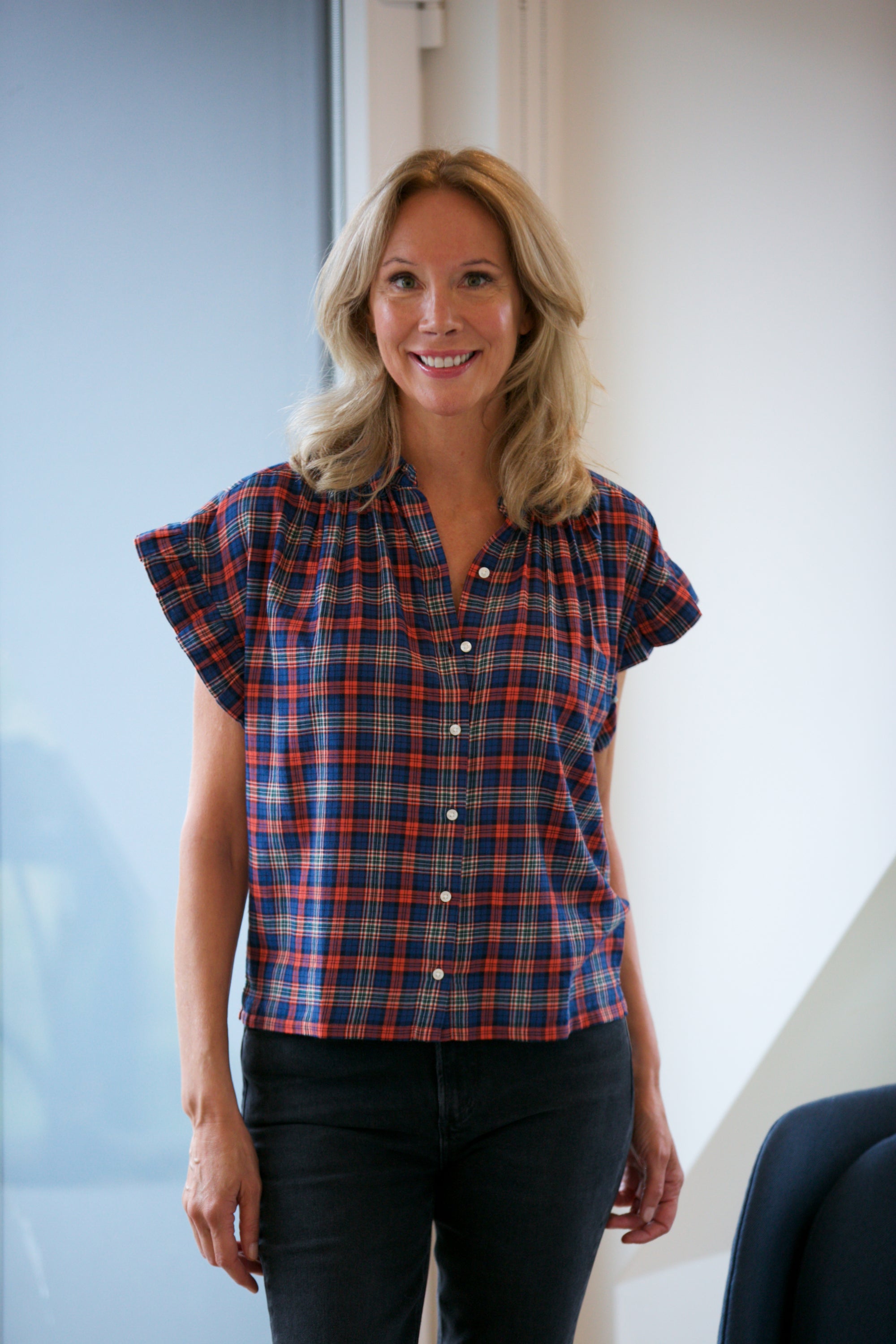 Birds of Paradis by Trovata Jess Blouse in Poppy & Pine Check