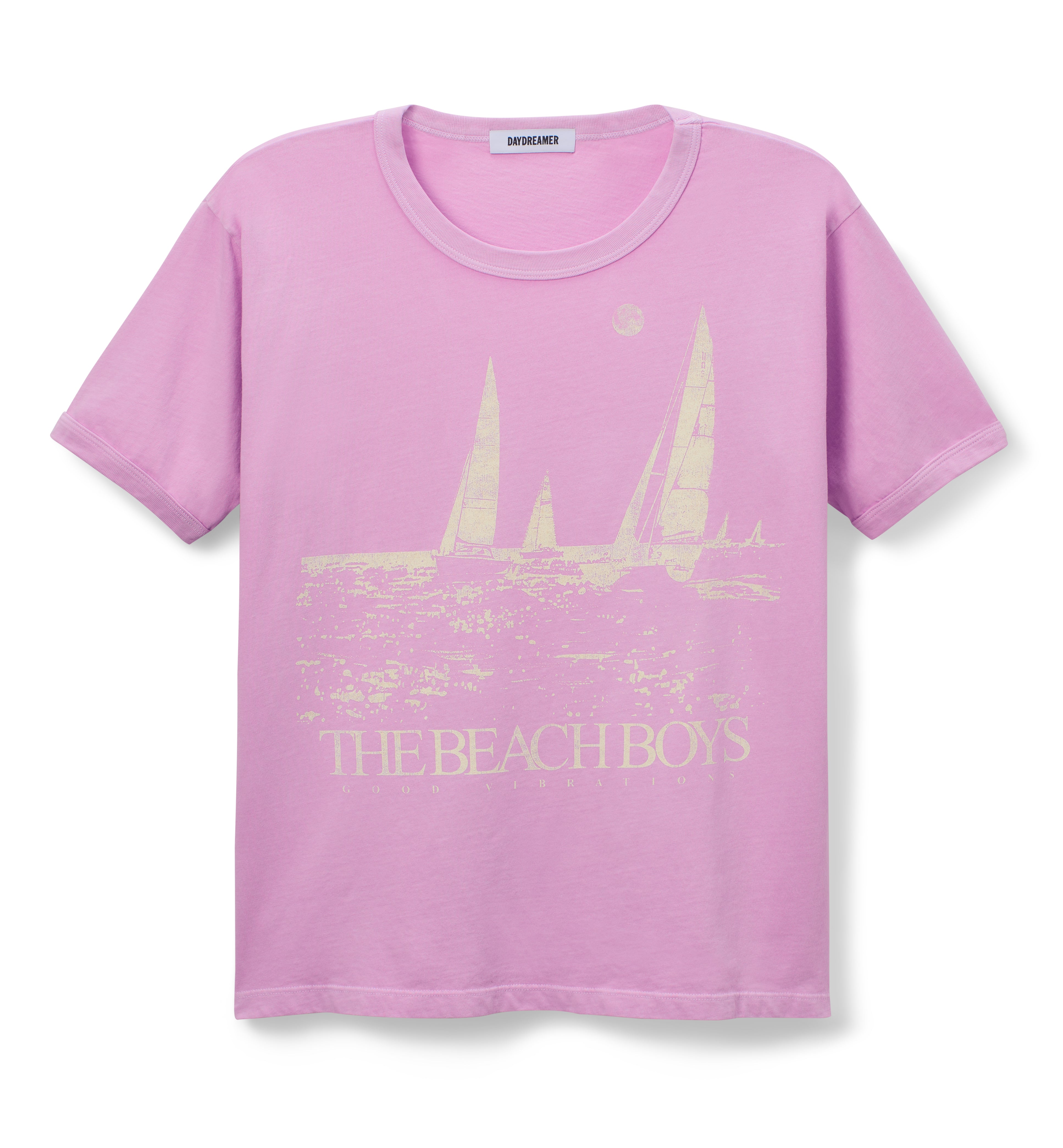 Smooth sailing. Add all the "Good Vibrations" to your rotation in a tee that captures the California energy that was The Beach Boys. Boats at sea cover the front of this tee stamped with the hit single's name.