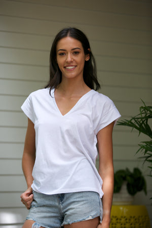 FRAME Made This Collection Of Fine Peruvian Pima Cotton T-Shirts To Perfectly Complement Their Signature Denim Fits. Each Tee Comes In Two Fits—A Longer Length For Mid-Rise Denim And A Cropped Length For High Rise. Choose Le Mid Rise V Neck With Mid-Rise Jeans.