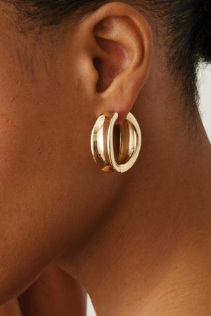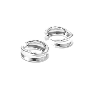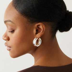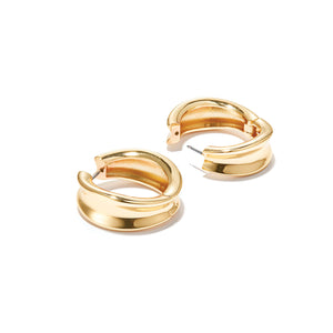 A pair of hoops with sculptural curves and a high-impact finish. Despite their bold body, they are lightweight, thanks to a hollowed out design. They open and close with a hinge, so you’ll never have to search for an earring back again. Pull back hinge gently to open. Push to lock onto post and listen for a "click" to ensure it's locked properly. Finished in high-polish gold or sterling silver.