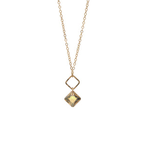 The delicate crystal catches the light with every movement, while the clean, sculptural lines of the open diamond shape bring a contemporary elegance to your everyday style. Layer it with other chains for a modern look or let it shine on its own as a sophisticated statement.
