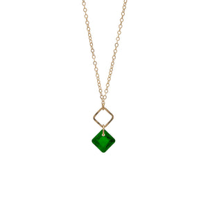 Modern minimalism meets timeless brilliance in this hand-forged pendant necklace, featuring an open diamond-shaped frame with a single princess-cut Swarovski crystal suspended at its center. Crafted with care in your choice of 14k Gold Filled or Sterling Silver, this design balances airy geometry with a touch of refined sparkle.