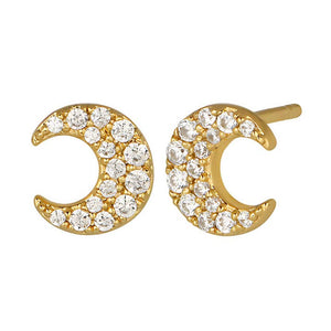 The Land of Salt Crescent Moon CZ Diamond Stud Earrings
