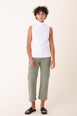 Prairie's staple organic cotton thick rib is like a lightweight sweater. Incredibly stretchy, it skims the body and holds it shape. Worn fitted or slightly loose, this foundation piece is bookish and rooted in a practice of creating basics that you can wear year after year. Softened and dyed in saturated tones. Always hang to dry to retain color vibrancy.