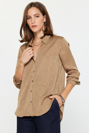 The NYLAND Citra Jacquard Button Down Shirt offers refined texture with a clean, versatile silhouette. Perfect for smart-casual or office-ready outfits, it elevates everyday looks with its tactile animal jacquard print.