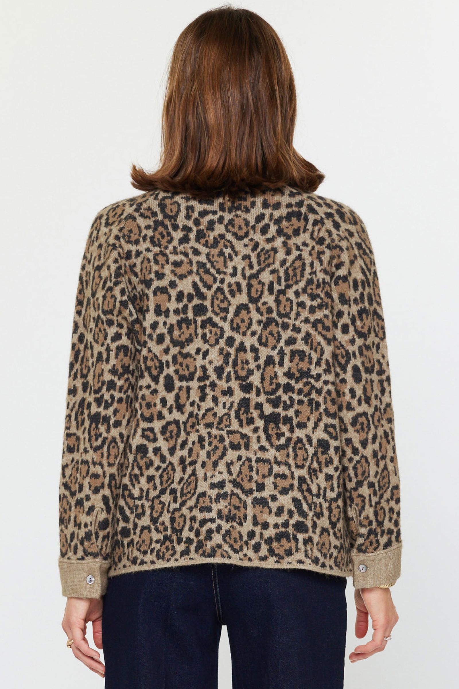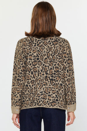 Meet the NYLAND Delyth Button Up Jacquard Knit Shacket — a fearless fusion of a shirt and jacket in a bold leopard jacquard knit. The all-over leopard pattern brings a chic, statement-making vibe, while the classic shirt collar and button-down front keep the silhouette timeless and easy to wear.