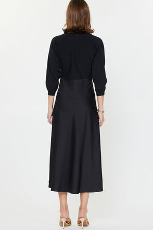 The NYLAND Kehlani Sweater Mixed Media Midi Dress blends cozy knit with a refined woven skirt for a versatile, feminine silhouette. Designed for the modern wardrobe, it transitions gracefully from day to night.