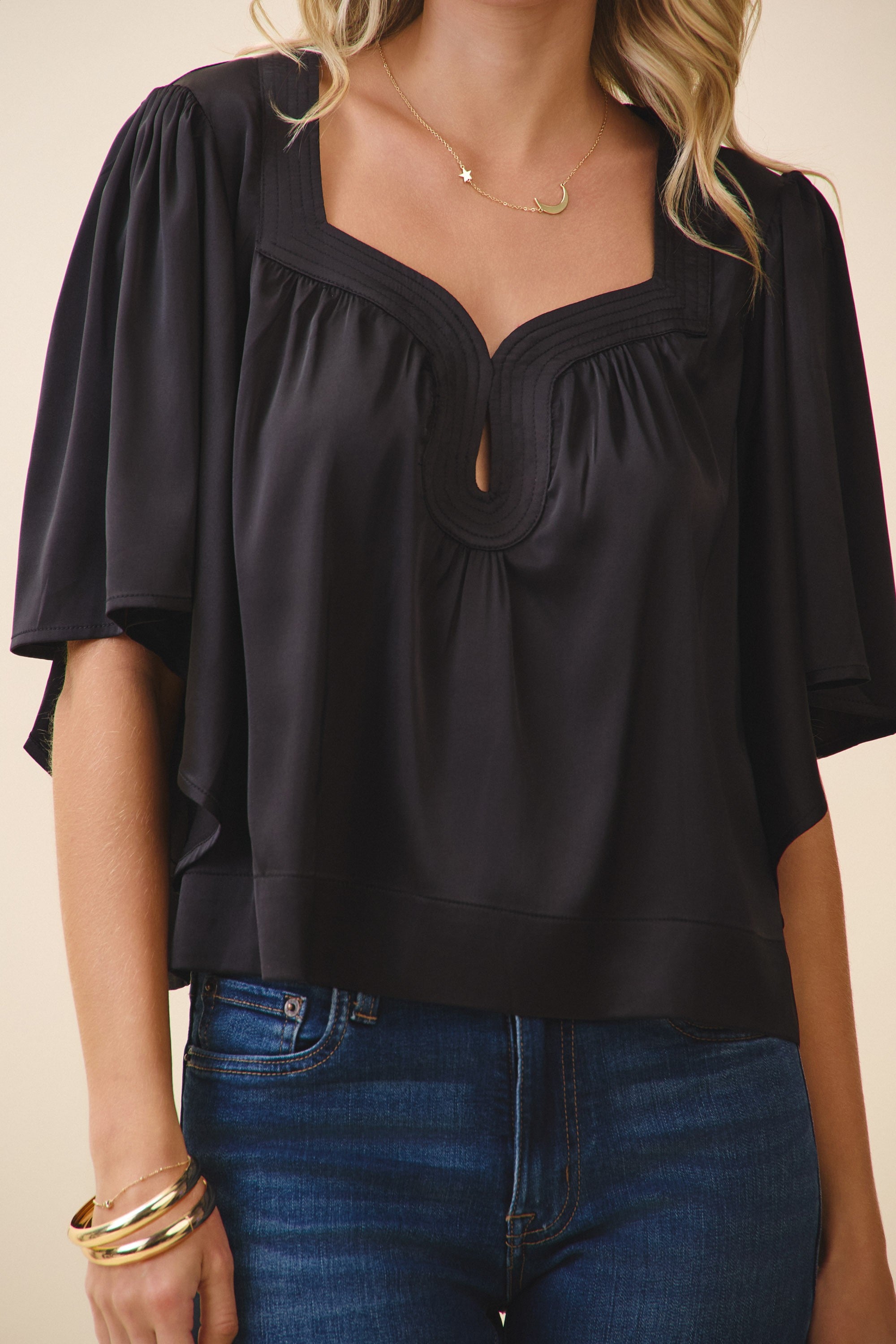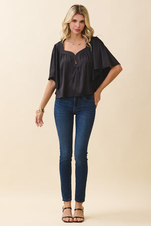 Effortless sophistication meets everyday comfort in the Nyland Magnolia Top. Featuring a wide notched neckline, soft gathers, and draped flutter sleeves, this relaxed-fit blouse brings a touch of elegance to any outfit.