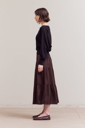 A fluid, sculptural knit that blends comfort and sophistication. The Sissy Batwing Top features a wide boat neckline and a slim waist hem that creates soft, natural drape through the body. Made from a soft, midweight knit, it pairs relaxed structure with an elegant silhouette—perfect for layering or standalone wear.