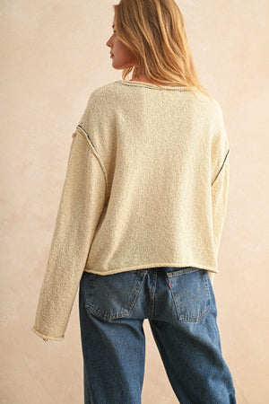 The breathable blend and easy silhouette make it a versatile layering staple—pair it with jeans for a casual day out or dress it up with a skirt for a polished, put-together look. The stitched contrast texture brings depth to a simple knit, making this sweater a standout piece in any wardrobe.