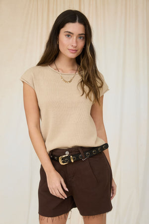 The NYLAND Alani Raw Edge Drop Shoulder Solid Knit Top is a lightweight, sleeveless knit piece designed for easy layering and everyday polish. With a round neckline, relaxed drop-shoulder silhouette, and a subtle raw-edge trim, it’s crafted for modern wardrobes that value clean lines and texture.
