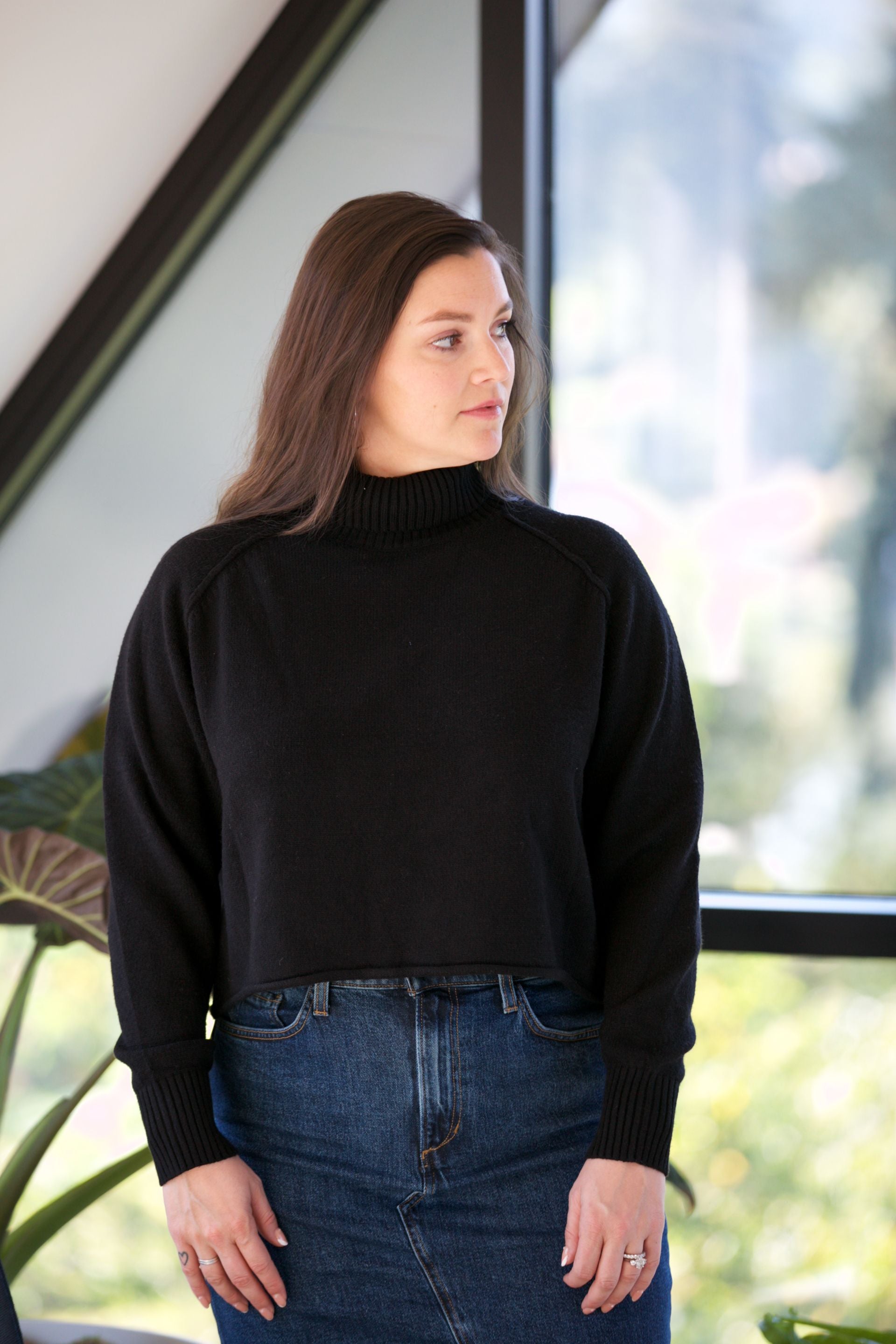 NYLAND Leopoldine Raw Edge Extended Shoulder Long Sleeve Sweater