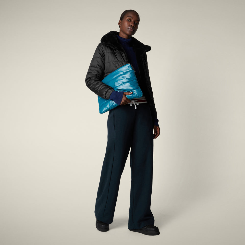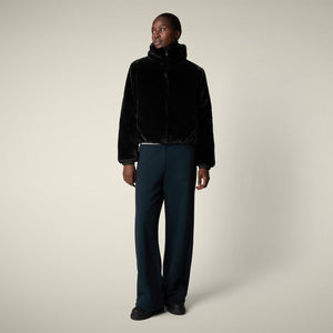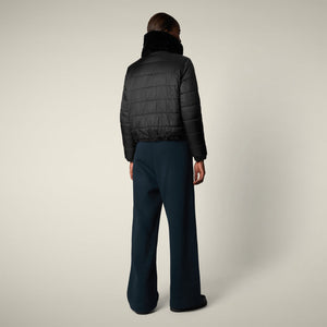 Made from soft faux fur, the Jeon model women's jacket lets you display your wild side while still respecting animals. The design features details like a high neck, zipped front and an elasticated hem. A reversible design, it has a quilted finish visible on one side.