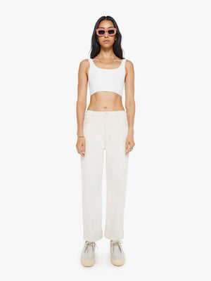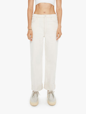 Designed to be worn loose and low at the hips, these straight-leg jeans have an ankle-length inseam, button fly and a clean, cuffed hem. Cut from a SUPERIOR cotton blend with a touch of stretch, Act Natural is a creamy white with tonal hardware.