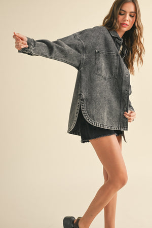 Built for everyday wear, the Mila Denim Shacket combines the rugged charm of denim with the practicality of a shirt jacket, creating a wardrobe staple you’ll reach for again and again.