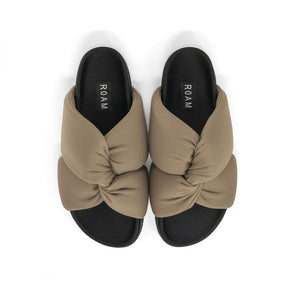 The ‘Twisted Scrunch’ slip-on sandal by ROAM is made in our signature neoprene fabric and features crisscross straps twisted and scrunched in the center. The upper lining is also neoprene for breathability and moisture wicking. Memory foam is inserted into the upper by hand, for a pillowed comfort that allows the shoe to mold to your foot for a perfectly cushioned fit.