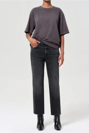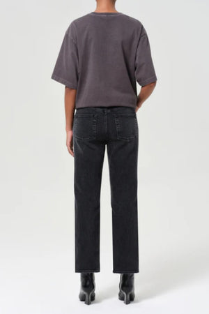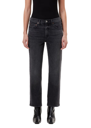 A timeless straight-leg silhouette with subtle edge. Designed with a mid rise and slim-straight fit through the leg, this pair feels lived-in yet refined—perfect for everything from oversized layers to minimal tanks.