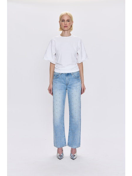 Meet your new favorite jeans. Designed with a flattering mid-rise and a unique bowed leg silhouette, these jeans offer a modern twist on a classic style. The straight leg is subtly bowed at the knees, creating a gently arched shape that's both comfortable and chic. The cropped ankle length and clean hem make them perfect for showcasing your favorite shoes.