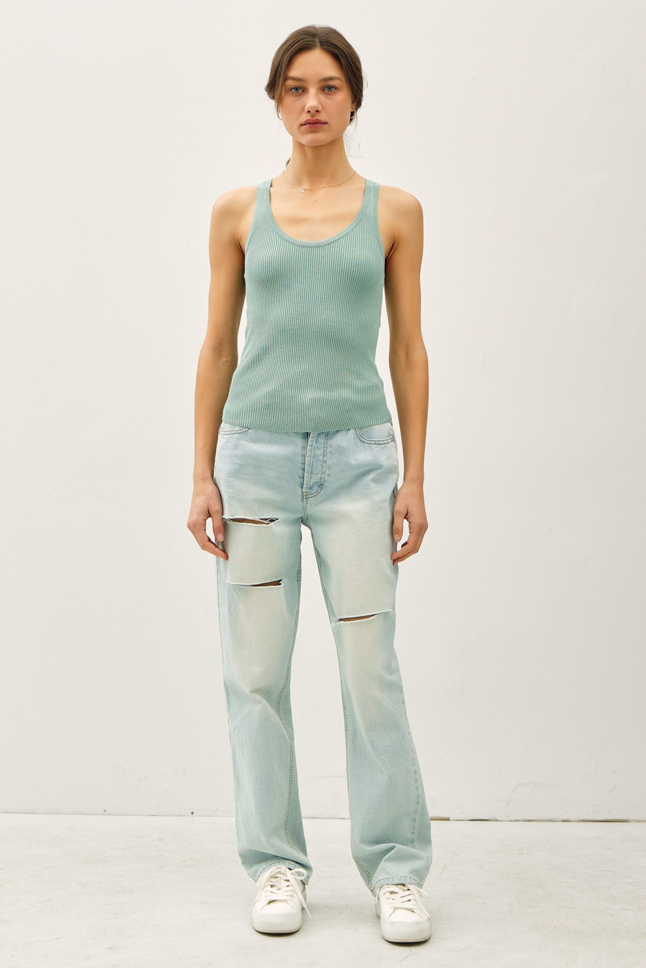 Meet the NYLAND Kendall Ribbed Tank — a modern, scoop-neck knit sleeveless top designed for everyday ease and elevated style. Crafted from a soft 95% viscose and 5% nylon blend, it drapes beautifully with a subtle ribbed texture that adds dimension without bulk.