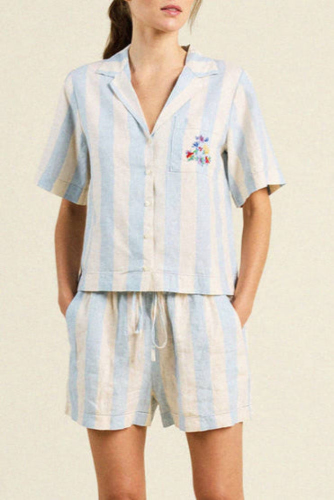 NYLAND Tobi V-Neck Pleated Blouse with Self Tie