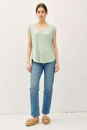 NYLAND Elanor Cap Sleeve Tee is a Bamboo/Modal basic designed for everyday comfort and easy, polished style. The scoop neck, cap sleeves, and rounded hem create a versatile silhouette that works from desk to dinner.