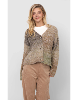 Sadie & Sage Smiley Ombre Fuzzy Knit Cardigan