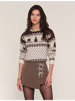Introducing, one of our favorite sweaters this season, The Litchi Sweater. It has a crew neck, and the perfect relaxed fit. The adorable ski jacquard pattern gets us in the mood for cozy days at the cabin.