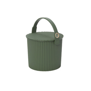 Hachiman reimagines the bucket as a colorful, lidded storage container with endless uses, indoors and out. Crafted in Japan to last a lifetime, it makes for a sleek and sturdy stool, side table, toybox, cooler, planter, wastebasket, recycling bin, and more. The opening in the handle is designed to hold a garden hose for hands-free filling. Easy to stack, each bucket can support up to 330 pounds.