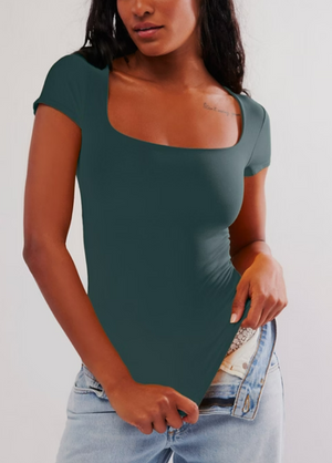 A new addition to your favorite seamless collection, this ultra-soft tee is featured in a slim-fitting silhouette with a square neckline and cap-inspired sleeves.