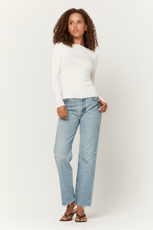 The Vera Boat Neck Long Sleeve features a flattering boat neckline and a buttery soft jersey fabric that hugs you just right. With delicate hemline stitching and a fitted silhouette, this long sleeve is as versatile as it is comfortable. Whether you're dressing it up with trousers or going casual with jeans or a midi skirt, this top’s got you covered.