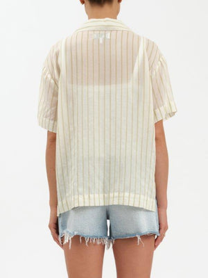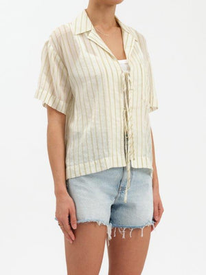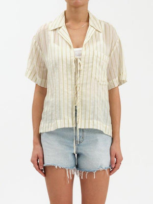 A chic take on a casual tee with a tie front and collared neckline. The slightly sheer fabric is ideal for layering on sunny spring days.