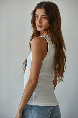 Classic scoop neck and sleeveless design create a versatile base for warm days or layered outfits.
