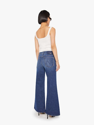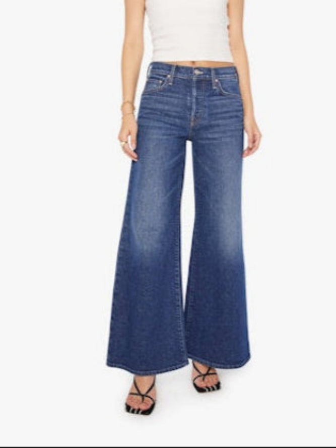 High-waisted wide-leg jeans with a button fly, 29-inch inseam and clean hem. Made from semi-rigid SUPERIOR denim, Perfectly Imperfect is a dark blue with whiskering and fading at the knees.