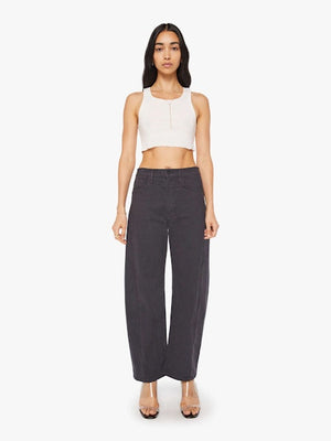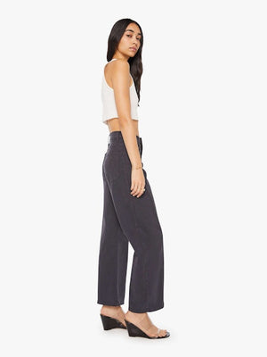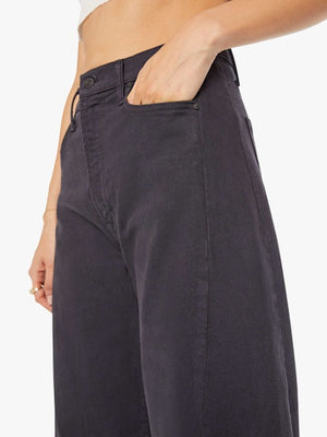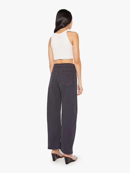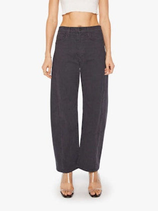 A super high-waisted pant with a wide, curved leg, zip fly, 30-inch inseam and a clean hem. Cut from a stretch cotton blend, the pants are designed in faded black with tonal hardware.