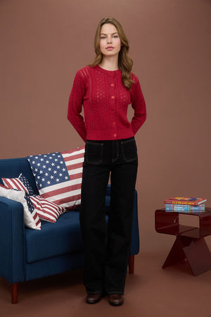 Discover the NYLAND Laidie Sheer Cable Knit Long Sleeve Button Down Cardigan—a lightweight, versatile layering piece designed to elevate every outfit. Crafted with a sheer merino wool blend, this cardigan drapes softly with a textured cable knit pattern, adding depth and sophistication to your everyday looks.