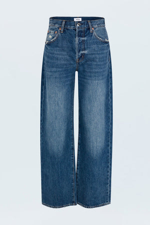 Blue denim, finally done right. Tate delivers the cool girl piece you've been waiting for—a modern denim fit that redefines effortless style. Sitting at a high rise with our signature bowed wide leg silhouette and full-length 32" inseam, this new fit brings trouser sophistication to the classic five-pocket jean. The subtle curve through the leg adds dimension while the wide opening brings modern proportion to any look. Crafted from 100% cotton non-stretch denim in Fulton, a classic blue wash that feels both timeless and contemporary.