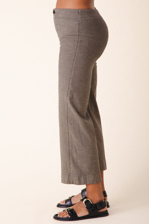 A sleek mid-rise, wide-leg, cropped pant made with high-stretch denim that conforms to your body. Casual and classic, with two back darts for shaping and no pockets for a minimal look that is also ideal for layering. The Knack Pants are pre-shrunk and retain their shape. Some dye transfer may occur before the first two laundry cycles. Wash in cold water to prevent fading.